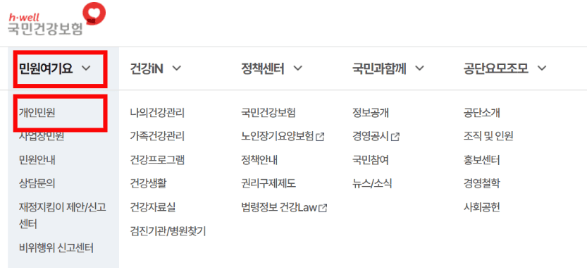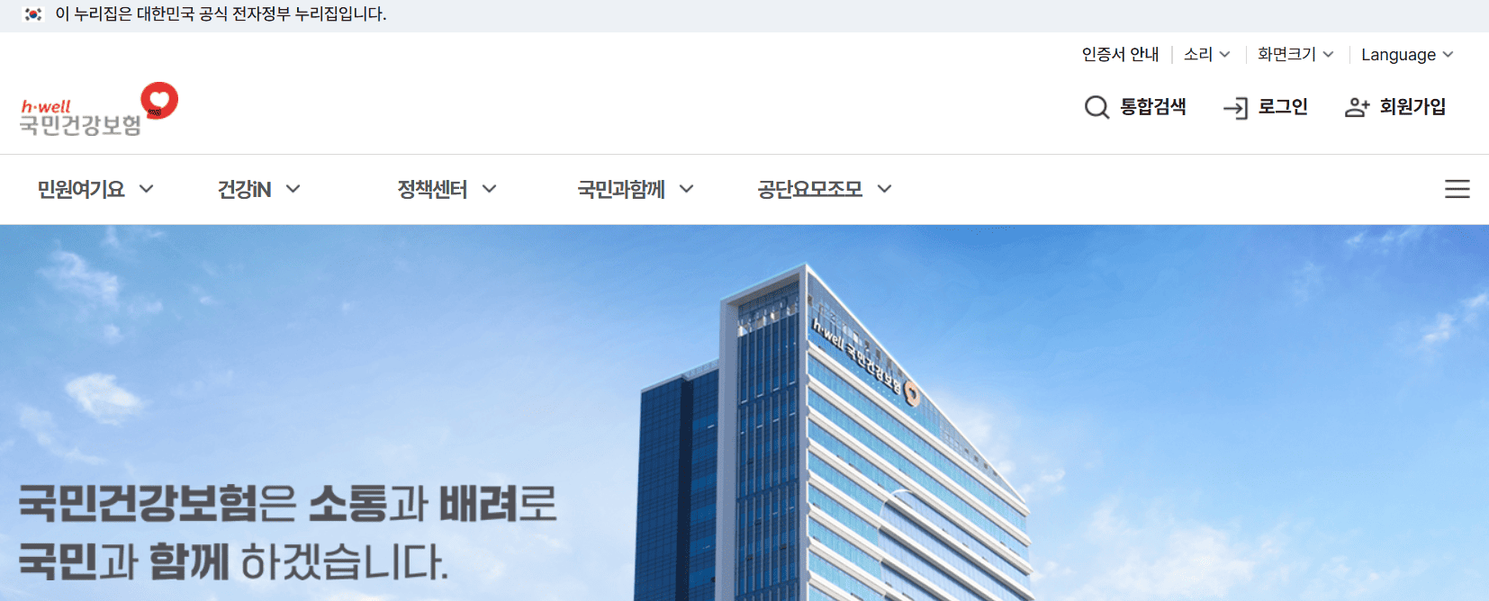 - 국민건강보험공단 홈페이지에 접속합니다.