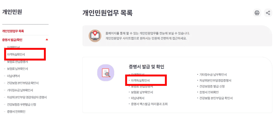 건강보험자격득실확인서 인터넷발급을 위해서는 다음의 단계를 따라주시면 됩니다.